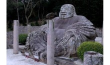 彌勒造像位于瑞巖寺右側(cè),又稱"仁佛".為元至正元年(1341年),本縣人呂伯恭之杰作。及依整塊巖石自然形態(tài),就地鑿成。像高6.4米、寬8.9米、存約8米許,頭部高2.3米、頭頂寬1.8米、耳長1.3米、嘴寬1.1米、肩寬1.6米。石像盤腿趺坐,袒 胸 露臍,左手捻珠,右手撫腹,兩眼平視,雙耳垂肩,笑容可掬,生動逼真,形神兼?zhèn)?,栩栩如生?/p>