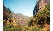 虎嘯龍川大峽谷坐落在武夷山自然保護區(qū)內(nèi),這里峰巒疊翠,繁花掩映,珍禽異獸,疊泉流瀑。諸多景致為一體,耳聞鳥鳴泉吟,目染峻山清澗。從跨入景區(qū)起,就進入了盆景和瀑布的世界。古木參天,藤蘿盤繞,集千年的靈氣而形神兼俱,美輪美奐的瀑布順著怪石嶙峋的山體銀鏈垂空,飛花濺玉,在陽光的照射下襯著丹霞的山體折射出迷人的七彩光暈,美不勝收,宛如仙境。