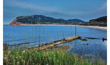 園中的主要建筑為一座高20余米的中西結(jié)合式的“月牙亭”、矗立在峭壁之上的“觀瀾亭”和長約千米的長廊。長廊前,還有一處用石球裝飾鋪筑的百米“石毯”,行之其上有“步踏珍珠”之感。最有情致的是月牙灣的球石,可以說是一個(gè)珠光寶氣的球石世界,潔白的如美玉,晶瑩的賽琥珀,無論你在什么地方捧起,都會(huì)一顆也舍不得丟下。黨和國家領(lǐng)導(dǎo)人多次來到月牙灣,都親自為月牙灣題字留詩。