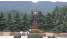 坐落在毛澤東紀(jì)念館和毛氏宗祠前的開闊地帶。周圍青松翠竹掩映,群山拱護(hù)。銅像身軀高大,體態(tài)穩(wěn)健,面帶微笑而又沉思,成功地塑造了領(lǐng)袖在開國大典時的偉人風(fēng)采。銅像基座上,鐫刻著江澤民題寫的“毛澤東同志”5個貼金大字。席銅像是按主席在開國大典上的形象設(shè)計的。