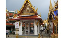 國(guó)家皇宮坐落在吉隆坡的一座小山丘上,雖沒(méi)有其他大國(guó)的皇宮建筑的宏大氣派,但卻有著皇宮一如既往的輝煌與莊嚴(yán)。在平常的時(shí)期,皇宮并不對(duì)外開放,所有的游客只能在皇宮門口欣賞整個(gè)皇宮的華麗。簡(jiǎn)單的皇宮門口是由一扇并不是很寬敞的鐵門與旁邊的小崗?fù)づc小門洞組成。僅僅就這一小片風(fēng)景,就讓游客迷戀不已。鐵門是用黑色作底色,襯以金黃色作為裝飾,典雅大方,從嚴(yán)肅中透出一種高貴。在鐵門的側(cè)邊的崗樓和崗樓旁的門洞中,各有一名哨兵站崗,在崗樓中的哨兵身穿白色上衣配有綠色前裙的制服,手持長(zhǎng)槍;在門洞中的哨兵,則穿一件紅色上衣,黑色長(zhǎng)褲,胯下騎一匹黑色高馬,威風(fēng)凜凜,常常吸引無(wú)數(shù)鏡頭。