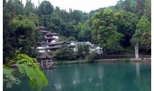 梨花塢又名大梨園,塢中建有同名寺院,主建筑慈云閣層樓高聳,飛檐翼然,古樸莊嚴(yán),為大慈大悲觀世音菩薩安享人間香火之所;附屬建筑藏經(jīng)樓、讀畫樓、醉月樓、菩提樓、養(yǎng)云池、雨花亭、瑞雪嶺等亭臺樓閣皆依山構(gòu)筑,錯落有致而又此呼彼應(yīng)地構(gòu)成一個嚴(yán)整的建筑群體。寺前一彎山溪如吟似奏