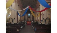 建于一九三八年,其設(shè)計主要采取澳門主要教堂的巴羅克式風(fēng)格。圣堂外墻以奶白色為主,還有橢圓形的窗戶及鐘樓。