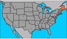 緬因州 (Maine -- ME)美國(guó)東北部新英格蘭地區(qū)一州。西北和東北邊境分別毗鄰加拿大,南臨大西洋 ,西接新罕布什爾州 。面積 8.6 萬(wàn)平方千米,人口123.3萬(wàn)(1990)。首府奧古斯塔 。地形主體為新英格蘭高地,地面波狀起伏,海拔 600 米左右,中部卡塔丁山海拔1606米,為全州最高峰。西北部為崎嶇的懷特山區(qū),東南部多狹窄的局部沿海低地,海岸曲折,多港灣,岸外小島棋布。