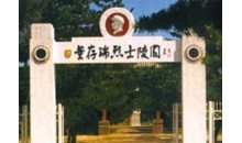 陵園的平面布局為中軸對(duì)稱式,坐北面南依次為:大門、牌樓、董存瑞塑像、董存瑞紀(jì)念碑和董存瑞墓。大門中間橫額上是蕭克將軍為陵園題寫(xiě)的園名“董存瑞烈士陵園”。牌樓兩側(cè)是董存瑞烈士碑亭和革命烈士碑亭,以及董存瑞烈士和革命烈士?jī)勺o(jì)念館。在亭、館間兩條對(duì)角線交點(diǎn)上,是翠柏簇?fù)淼亩嫒鹆沂克芟?。英雄身著軍裝,昂首挺胸,左手高擎炸藥包,右手緊握拉開(kāi)的導(dǎo)火索,再現(xiàn)了董存瑞視死如歸的英雄氣概。